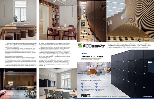 Rauhallisia , luonnonläheisiä sävyjä Pintamateriaalit ja värisuunnitelma muodostavat yhtenäisen kokonaisuuden , joka sopii vanhaan rakennukseen . Vanhan osan auloissa , käytävillä ja kokouskeskuksessa on käytetty lattiamateriaalina tammiparkettia . Tammi toistuu myös mittatilauksesta valmistetuissa kiintokalusteissa sekä irtokalustuksessa .