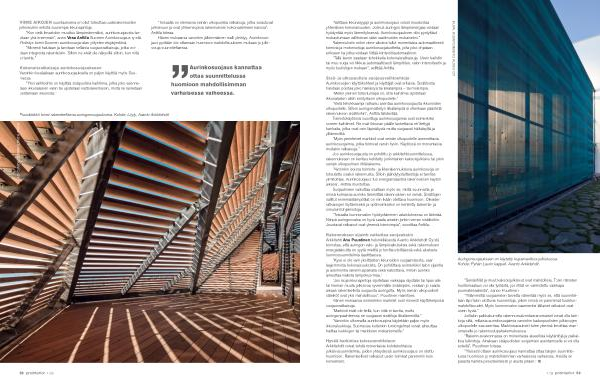 Rakennuksen sijainti vaikuttaa suojauksiin Arkkitehti Anu Puustinen helsinkiläisestä Avanto Arkkitehdit Oy : stä korostaa , että auringon valo- ja lämpövaikutuksia sekä rakennuksen energiataloutta on syytä miettiä jo tonttia etsittäessä sekä alustavia luonnossuunnitelmia laadittaessa .