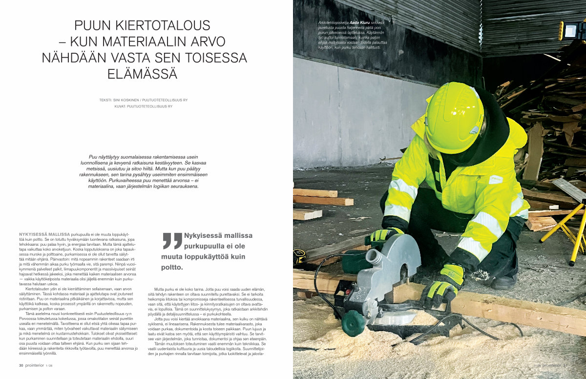 Arkkitehtiopiskelija Aada Kiuru sirkkelöi puretusta puusta haljenneita päitä pois purun jälkeisessä lajittelussa. Käytännön työ auttoi tunnistamaan, kuinka paljon ehjää materiaalia voidaan todella palauttaa käyttöön, kun purku tehdään hallitusti.