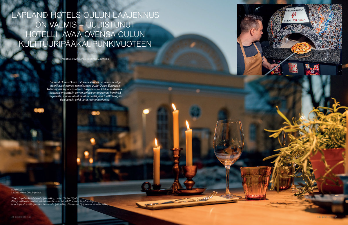 Lapland Hotels Oulun mittava laajennus on valmistunut ja hotelli avasi ovensa tammikuussa 2026 Oulun Euroopan kulttuuripääkaupunkivuoteen. Laajennus toi Oulun keskustaan kokonaisen korttelin verran pohjoisen tunnelmaa henkivää majoitusta, monipuoliset tapahtumatilat jopa 1 000 hengen tilaisuuksiin sekä uutta ravintolatarjontaa.