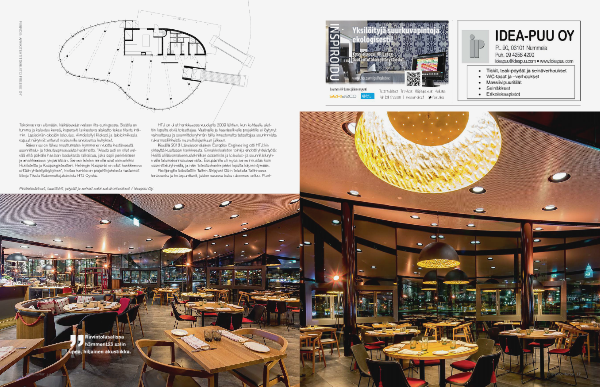Puukalustukset, baaritiskit, pöydät ja sohvat sekä seinäverhoukset / Ideapuu Oy.