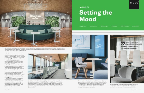 graafisissa elementeissä kuten seinägrafiikoissa, akustisissa pinnoissa,