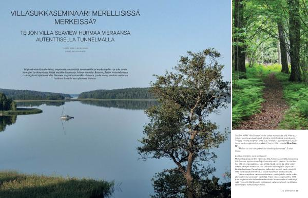 TALON NIMI ’ Villa Seaview ’ ei ole turhaa mainostusta , sillä Villan suurista ikkunoista avautuvat upeat , silmiä ja mieltä hivelevät merinäkymät . ” Villassa on oma yksityinen ranta-alue , venelaituri ja porrastetussa puutarhassa useita suojaisia oleskelualueita ”, kertoo Villan emäntä Stina Suutari .