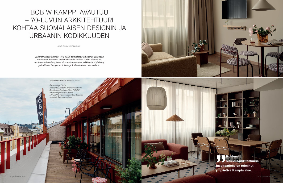 Kohteen sisustusarkkitehtuurin inspiraationa on toiminut ympäröivä Kampin alue.