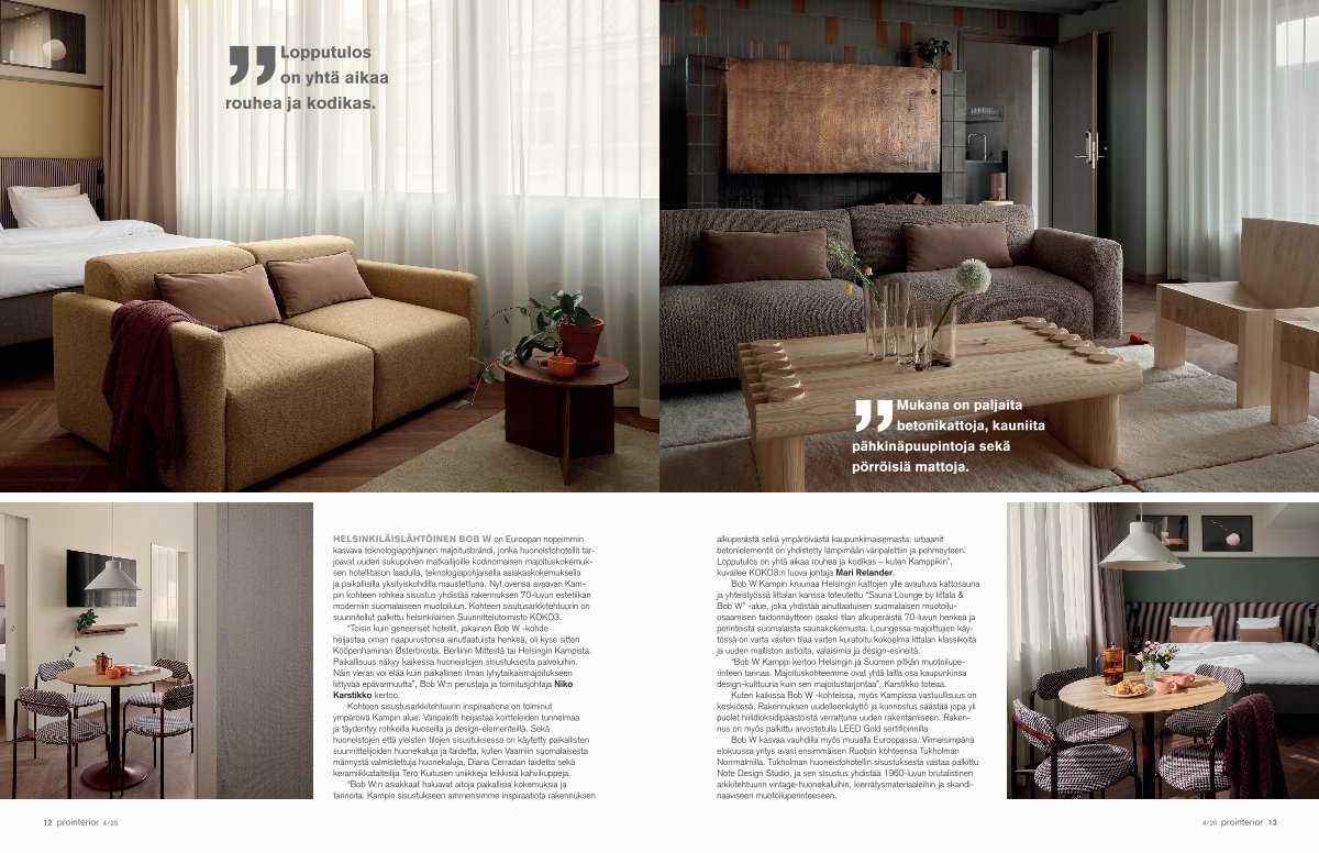 “ Bob W Kamppi kertoo Helsingin ja Suomen pitkän muotoiluperinteen tarinaa. Majoituskohteemme ovat yhtä lailla osa kaupunkinsa design-kulttuuria kuin sen majoitustarjontaa”, Karstikko toteaa.