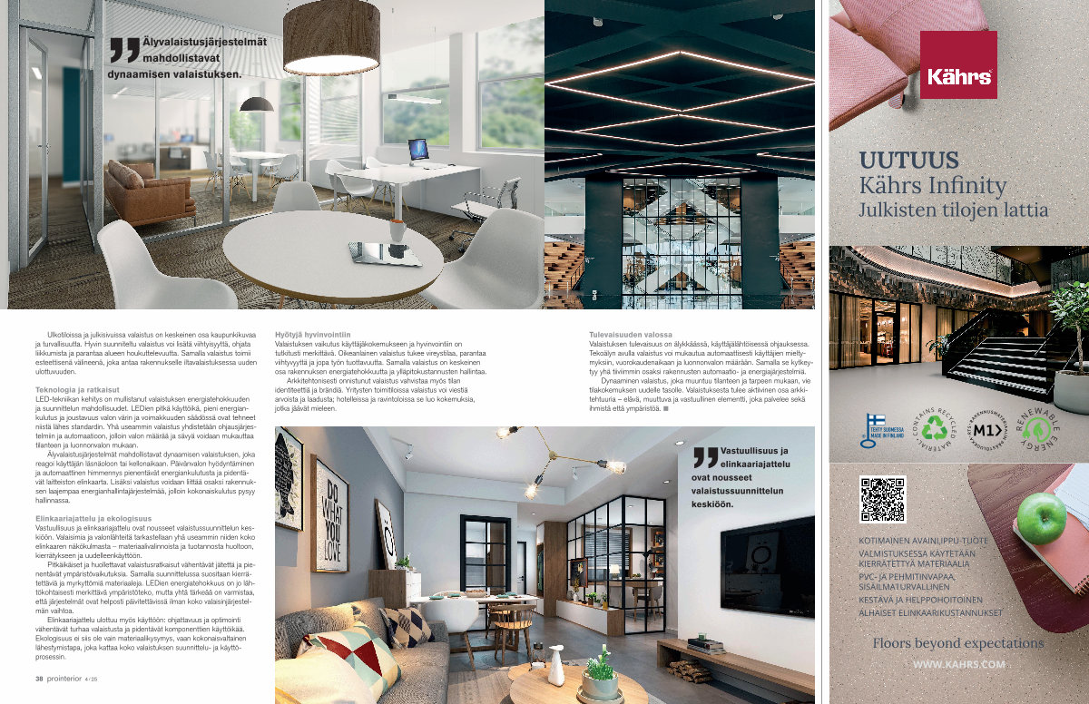Dynaaminen valaistus, joka muuntuu tilanteen ja tarpeen mukaan, vie tilakokemuksen uudelle tasolle. Valaistuksesta tulee aktiivinen osa arkkitehtuuria – elävä, muuttuva ja vastuullinen elementti, joka palvelee sekä ihmistä että ympäristöä. n”