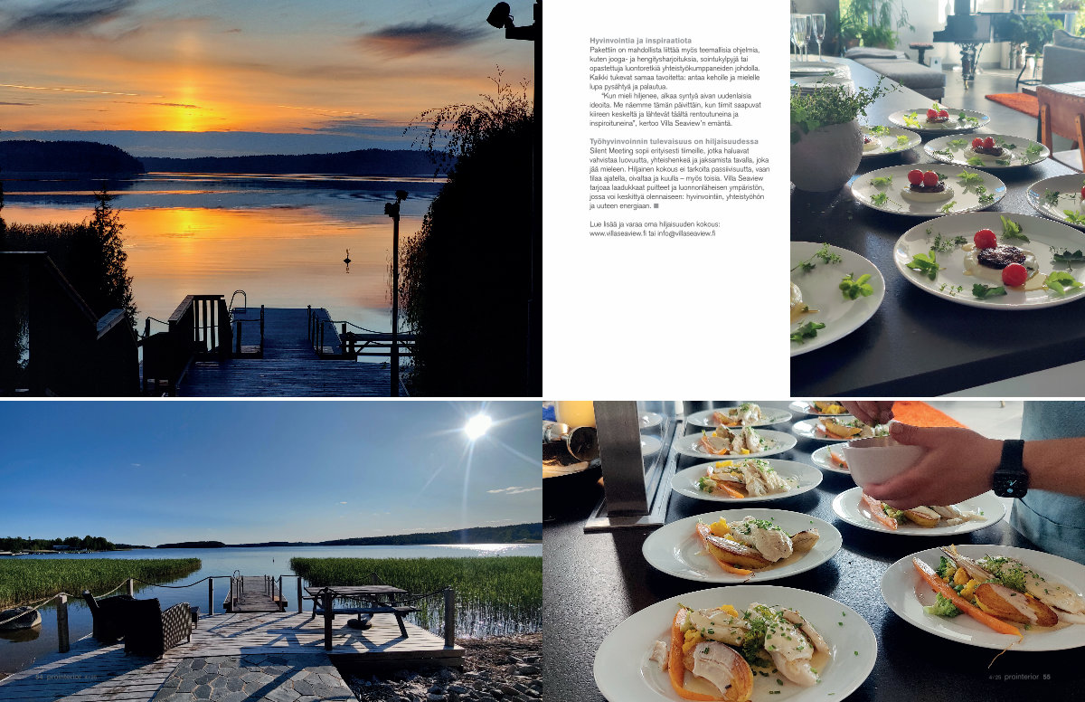“ Kun mieli hiljenee, alkaa syntyä aivan uudenlaisia ideoita. Me näemme tämän päivittäin, kun tiimit saapuvat kiireen keskeltä ja lähtevät täältä rentoutuneina ja inspiroituneina”, kertoo Villa Seaview’ n emäntä.