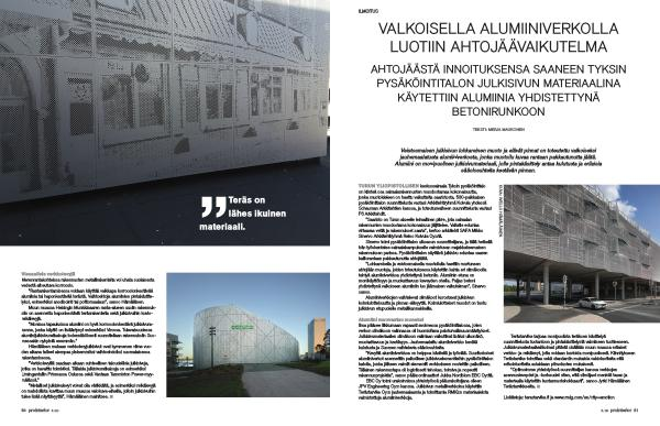 ” Monissa tapauksissa alumiini on hyvä korroosionkestävä julkisivurakenne , jonka käyttö on lisääntynyt esimerkiksi Virossa . Tulevaisuudessa alumiinijulkisivuratkaisuja todennäköisesti suunnitellaan rakennuksiin Suomessakin nykyistä enemmän .”