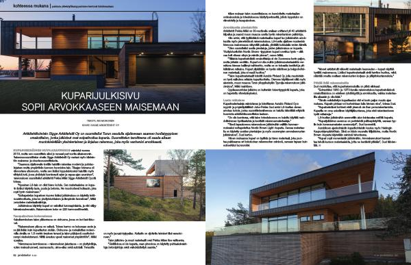 Arkkitehtitoimisto Sigge Arkkitehdit Oy on suunnitellut Turun seudulla sijaitsevaan saareen huvilatyyppisen omakotitalon , jonka julkisivut ovat esipatinoitua kuparia . Suunnittelun tavoitteena oli saada aikaan muotokieleltään yksinkertainen ja linjakas rakennus , joka myös vanhenisi arvokkaasti .