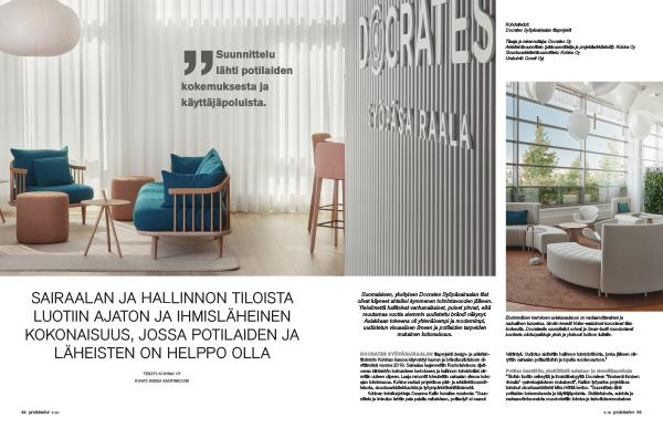 Potilas keskiöön , yksilöllisiä asiakas- ja vierailijapolkuja ” Tiloihin tuotiin selkeyttä ja ihmisläheisyyttä Docrateen ” Ihmisenä ihmisen rinnalla ” -palveluajatuksen mukaisesti ”, Kallion työparina projektissa toiminut sisustusarkkitehti Mira Hölttä kertoo . ” Suunnittelu lähti potilaiden kokemuksesta ja käyttäjäpoluista . Sisääntulosta , auloista ja vastaanottohuoneista muodostettiin toimiva ja tarkoituksenmukainen