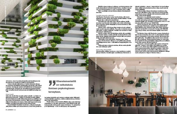 ” Tämä kehitys ei ihan heti pysähdy ”, Nieminen uskoo . Hänen mukaansa vihersisustamisen näkyvyys on nyt hyvällä tasolla ja jalansija suunnittelijaporukoissa vahva – mutta liialliseen itsetyytyväisyyteen ei ole syytä .
